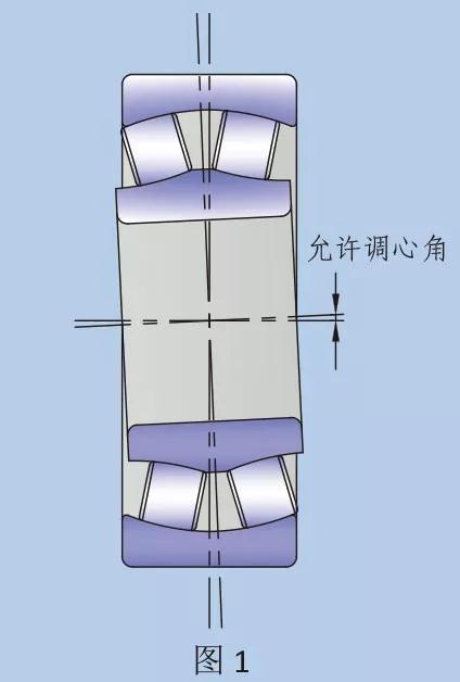 調心滾子軸承的設計,令其具有自動調心功能,即軸承本身可調節內、外圈間的角度對準誤差。在正常載荷及工作條件下,內圈轉動時,容許存在右表中給出的不對心值。